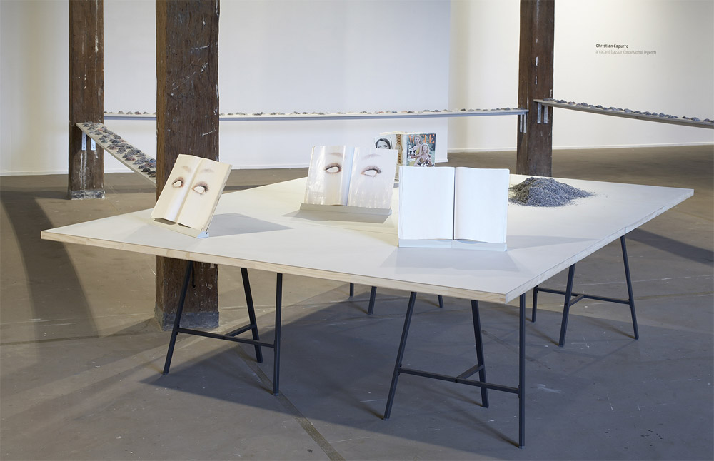 a vacant bazaar (provisional legend), 1999-2010 installation of nine erased magazines with rubber erasings Artspace views & details