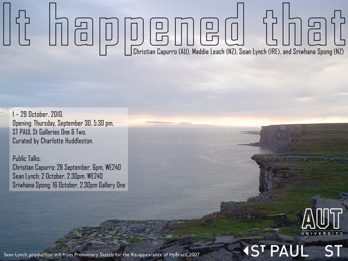 ST PAUL St Gallery is pleased to present 'It happened that', an exhibition that explores speculative approaches to perception and the possibilities that guide one's experience of one's surroundings. The exhibition brings together works by Christian Capurro, Maddie Leach, Sean Lynch, and Sriwhana Spong that share a tendency to shift in place and time, creating an awareness of contingencies.