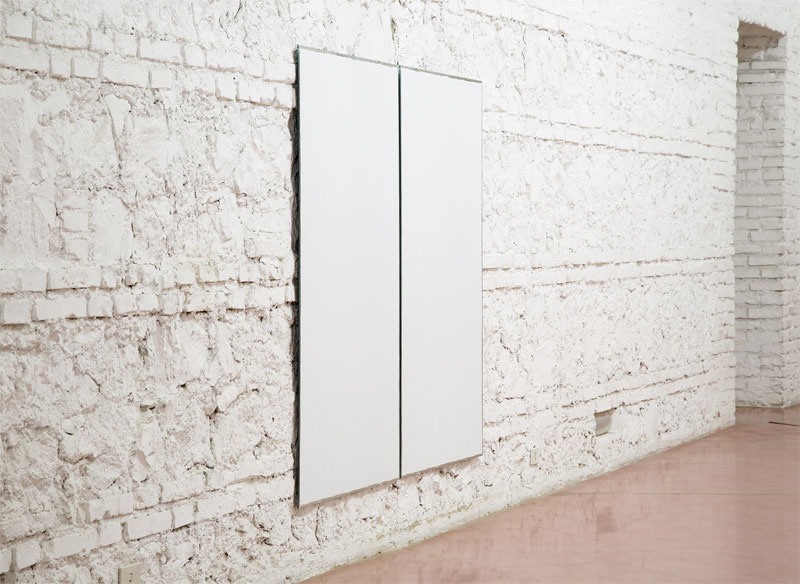The production of a new mirror work in Rome for this exhibition was supported by the American Academy in Rome and STUK Kunstencentrum.
