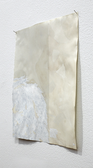 ink, correction fluid on paper, pins