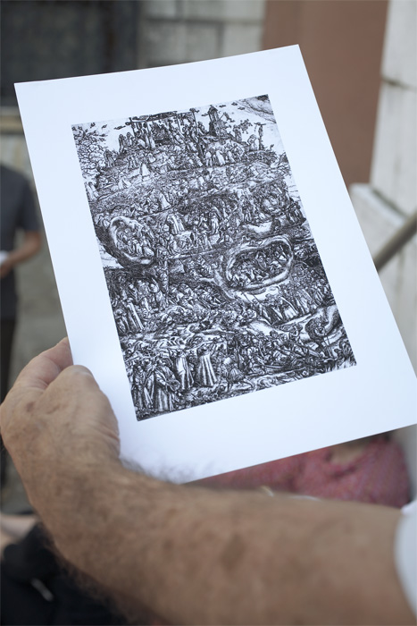 Secondly, the relationship between an action and its trace are articulated to always implicate the past in the present. Particularly set against the visual language of the glossy, this implication is markedly set against the amnesiac visual language which is the dominant form in our culture. The nature of the relationship between action and trace in drawing is that the past manifests itself through traces, which both act as records of the past but also suggests future actions. This is not a feature exclusive to drawing, since all radical actions in the past leave residues which in turn suggest future related radical actions. Capurro's object - this residue of five years' work across many places and with many slightly sore hands involved - to me reads as a drawing, in large part because like most drawings I have seen and enjoyed in the past, it manifests a paradoxical impulse to both exacerbate the form of the present, as well as to reach outside the form of the present. The persistence of this object, a function of this paradox, is also its muteness.